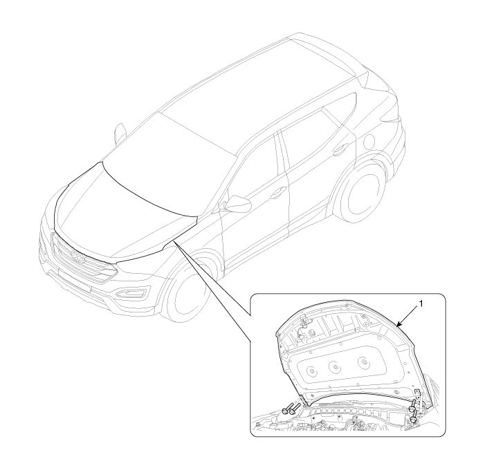 Hyundai Santa Fe: Hood Assembly. Components and Components Location - Hood - Body (Interior and Exterior)Hyundai Santa Fe: Hood Assembly. Components and Components Location