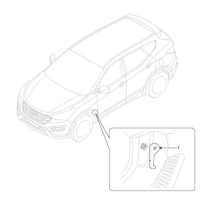 Hyundai Santa Fe: Hood Latch Release Handle. Components and Components Location - Hood - Body (Interior and Exterior)Hyundai Santa Fe: Hood Latch Release Handle. Components and Components Location