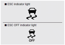 When ignition switch is turned to ON, the indicator light illuminates, then goes off if the ESC system is operating normally.