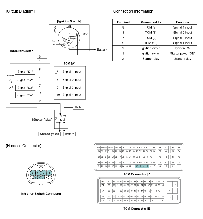 Hyundai Santa Fe: Inhibitor Switch. Schematic Diagrams