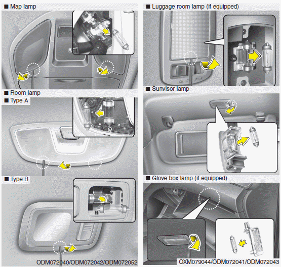 Hyundai Santa Fe: Interior lamp bulb replacement