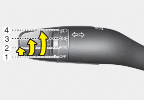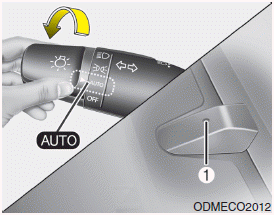 When the light switch is in the AUTO light position, the taillights and headlights will be turned ON or OFF automatically depending on the amount of light outside the vehicle.