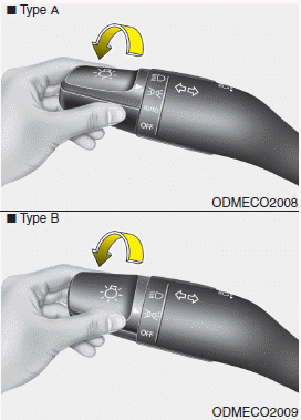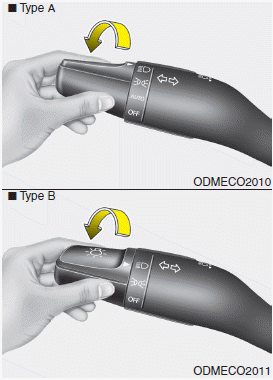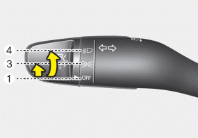 To operate the lights, turn the knob at the end of the control lever to one of the following positions: