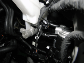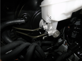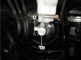Disconnect the brake tube (A) from the master cylinder by loosening