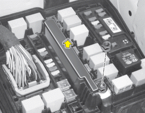 1. Turn the ignition switch and all other switches off. 2. Remove the fuse box cover by pressing the tab and pulling up. 3. Check the removed fuse; replace it if it is blown. To remove or insert the fuse, ...