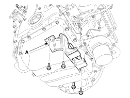 Remove the oil pan (A). Insert the blade of SST (09215-3C000)