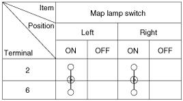 Inspection 1. Remove the room lamp assembly then check for continuity between terminals. [General] [Panorama Sunroof] Removal 1. Disconnect the negative (-) battery terminal. 2. Detach the lamp lens (A) ...