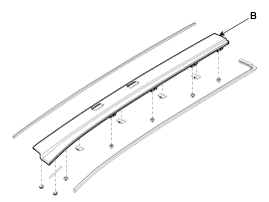 Install the rear roof molding (A) and the front roof molding (B).