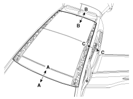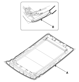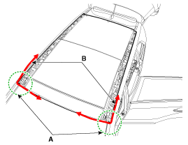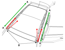 Apply sealant (B) on the panorama sunroof (A) with a sealant gun.