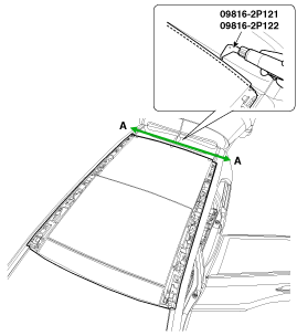 tools (09816-2P121, 09816-2P122) while lifting the panorama sunroof