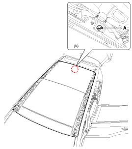 Loosen the panorama sunroof nuts (A).