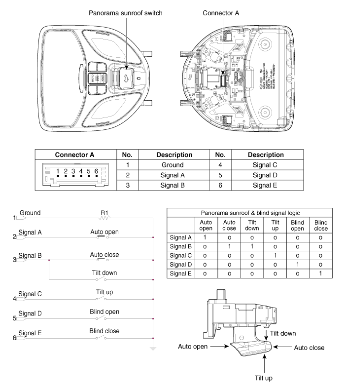 Circuit Diagram Connector Pin Information No. Wire harness connector Panorama motor Blind motor 1 Ground 1 Ground 1 Ground 2 2 Glass status signal / Tool fot glass Glass status signal/ Tool (Parameter) ...
