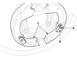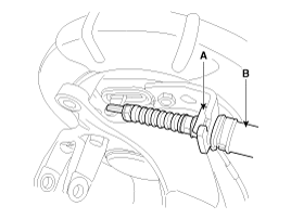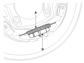 Remove the adjuster assembly (B) and the lower return spring (A).