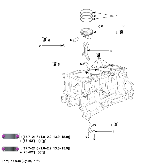 Hyundai Santa Fe: Piston and Connecting Rod. Components and Components Location - Cylinder Block - Engine Mechanical SystemHyundai Santa Fe: Piston and Connecting Rod. Components and Components Location