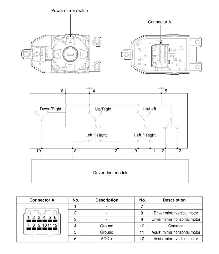 Hyundai Santa Fe: Power Door Mirror Switch. Schematic