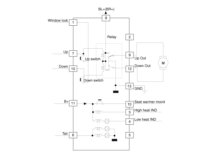 Hyundai Santa Fe: Power Window Switch. Schematic Diagrams