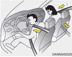 - For your safety, be sure that the belt webbing is not loose or twisted and always sit properly on your seat.