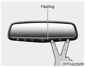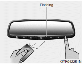 3. Simultaneously press and hold both the HomeLink® and handheld transmitter buttons until the HomeLink® indicator light changes from a slow to a rapid blinking light. Now you may release both the HomeLink® and hand-held transmitter buttons.