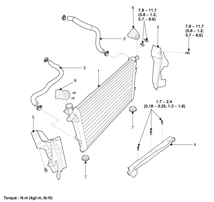 Hyundai Santa Fe: Radiator. Components and Components Location - Cooling System - Engine Mechanical SystemHyundai Santa Fe: Radiator. Components and Components Location