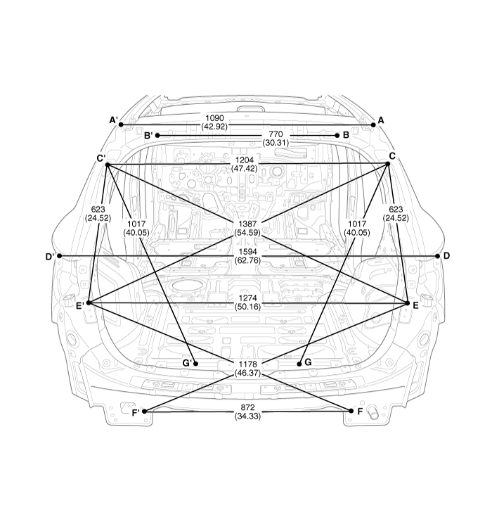 Hyundai Santa Fe: Rear Body. Body Repair - Body Dimensions - Body (Interior and Exterior)Hyundai Santa Fe: Rear Body. Body Repair