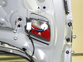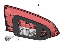 Removal 1. Disconnect the negative (-) battery terminal. 2. Remove the luggage room lamp lens (A) with a flat-tip screwdriver after loosening the screws (2EA). 3. Remove the luggage room lamp bulb (A). ...