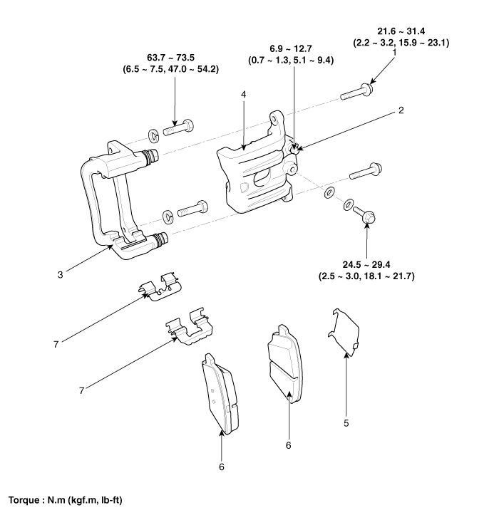 Hyundai Santa Fe: Rear Disc Brake. Components and Components Location - Brake System - Brake SystemHyundai Santa Fe: Rear Disc Brake. Components and Components Location