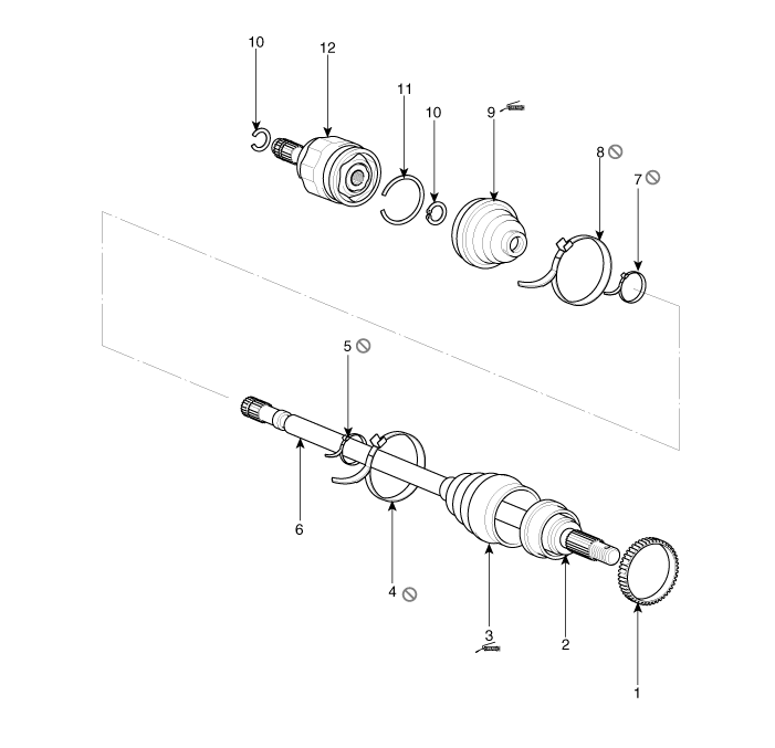 7. TJ boot small part band 8. TJ boot big part band 9. TJ boot 10. Snap ring 11. Circlip 12. TJ assembly |