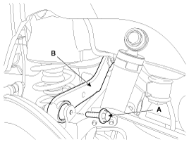 Remove the rear upper arm (A) after loosen the bolt (B).