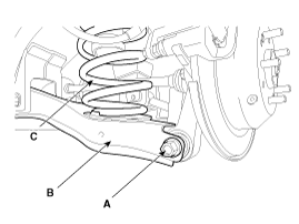 Remove the rear lower arm (B), spring (C) as loosening bolt (A)