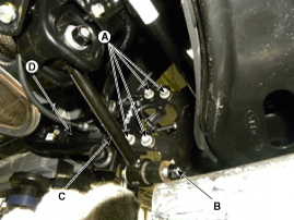 Remove the rear assist arm (C), trailing arm (D) as loosening