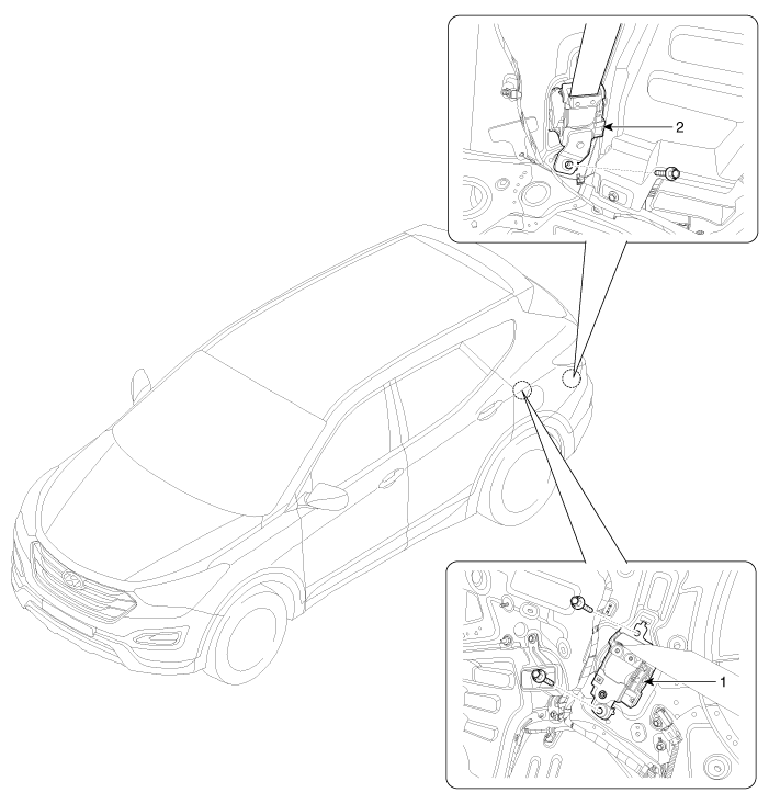 Hyundai Santa Fe: Rear Seat Belt Retractor. Components and Components Location - Rear Seat Belt - Body (Interior and Exterior)Hyundai Santa Fe: Rear Seat Belt Retractor. Components and Components Location