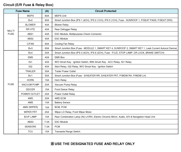 Component Location 1. Power outlet relay 2. Start relay 3. Front deicer relay 4. Blower relay 5. Wiper relay (Low) 6. ACC relay 7. IG1 relay 8. IG2 relay 9. Cooling fan relay 10. Wiper relay (High) 11. ...