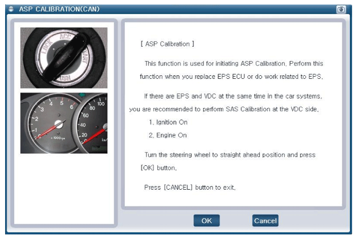 Caution when ASP (Absolute Steering Position) calibration or EPS type recognition
