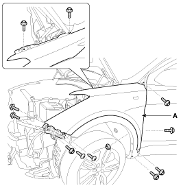 After loosening the mounting clips, then remove the fender side