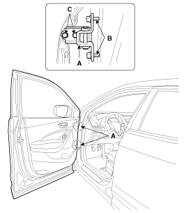 If necessary adjust the striker (A): The striker nuts are fixed.