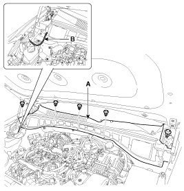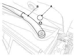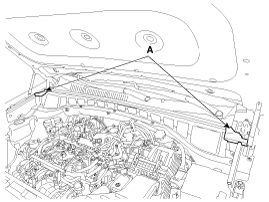 Remove the glue on end of both sides (A) of the hood weatherstrip.