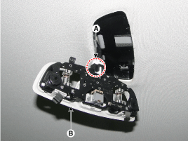 Removal Door Mirror Turn Signal Lamp 1. Disconnect the negative (-) battery terminal. 2. Remove the mirror holder (A) from the outside mirror assembly. Be careful not to damage the fixing clip 3. Remove ...