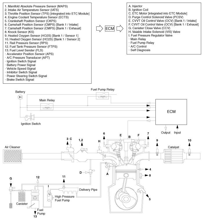 Components Location 1. PCV Valve 2. Canister 3. Purge Control Solenoid Valve (PCSV) 4. Fuel Tank Pressure Sensor (FTPS) 5. Canister Close Valve (CCV) 6. Fuel Level Sender (FLS) 7. Fuel Tank Air Filter ...