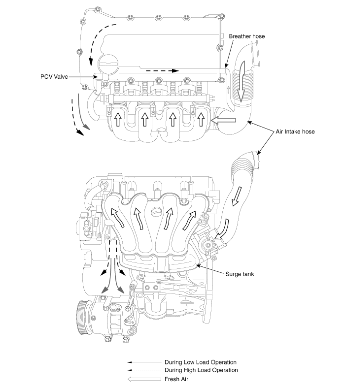 Inspection 1. After disconnecting the vapor hose from the PCV valve, remove the PCV valve. 2. Reconnect the PCV valve to the vapor hose. 3. Inspect the PCV vlave operation. (1) Run the engine at idle. ...