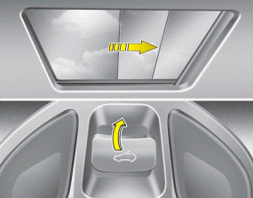 When the sunshade is closed If you push the sunroof control lever upward, the sunshade will slide halfway open then the sunroof glass will tilt. To stop the sunroof movement at any point, pull or push ...