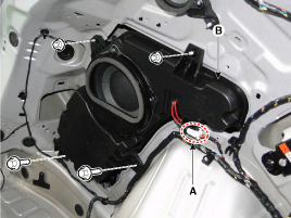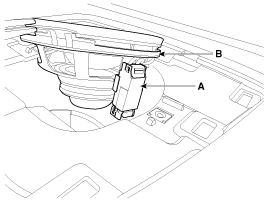 Removal 1. Disconnect the negative (-) battery terminal. 2. Remove the console front complete assembly (A). 3. Remove the multimedia jack (B) after disconnecting the connector (A) from the console front ...
