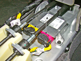 Pull up the lock, of the SRSCM connector, then disconnect the