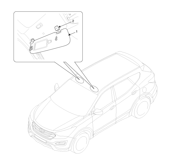 Hyundai Santa Fe: Sunvisor. Components and Components Location - Roof Trim - Body (Interior and Exterior)Hyundai Santa Fe: Sunvisor. Components and Components Location