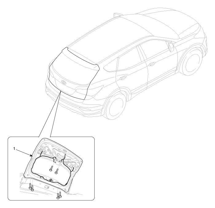 Hyundai Santa Fe: Tail Gate Assembly. Components and Components Location - Tail Gate - Body (Interior and Exterior)Hyundai Santa Fe: Tail Gate Assembly. Components and Components Location