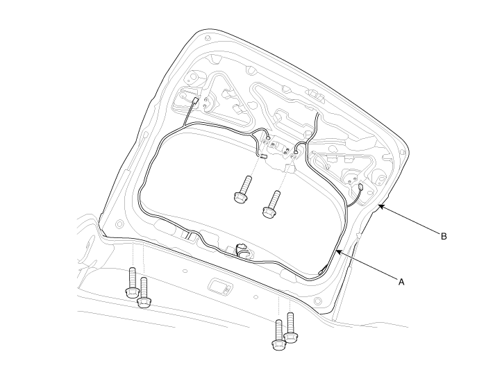 Disconnect the washer nozzle hose (A) and high mounted stop lamp