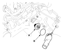 Remove water inlet fitting (A), gasket (B) and thermostat