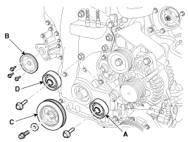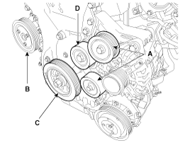 the crankshaft pulley (C) and the drive belt tensioner pulley (D).