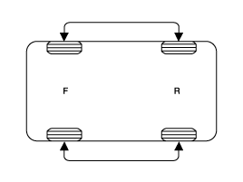 If the steering pulls to one side, rotate the tires according to the following