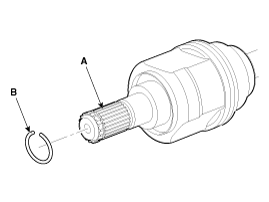 Remove the housing circlip (B) from the driveshaft spline (A).