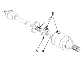 Components [LH] 1. BJ assembly 2. BJ circlip 3. BJ boot band 4. BJ boot 5. Shaft 6. TJ boot band 7. TJ boot 8. Spider assembly 9. Retainer ring 10. TJ housing 11. Housing circlip [RH] 1. BJ assembly 2. ...